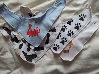 After discovering Jack had started teething quite early the dribble was just unbearable. It was making Jack's neck really sore and resulting in many outfit changes, especially t-shirts; respectively increasing my washing load. However I was attending the Brmingham Baby Show the next week so decided I would look for some dribble bibs there as I had heard they were very good. After searching all the stores, I decided to settle for Funky Giraffe Bibs. Not only did they have the better deal for multi-buy but they also had so much choice. Various patterns for both boys and girls; Jack and I were spoilt for choice.